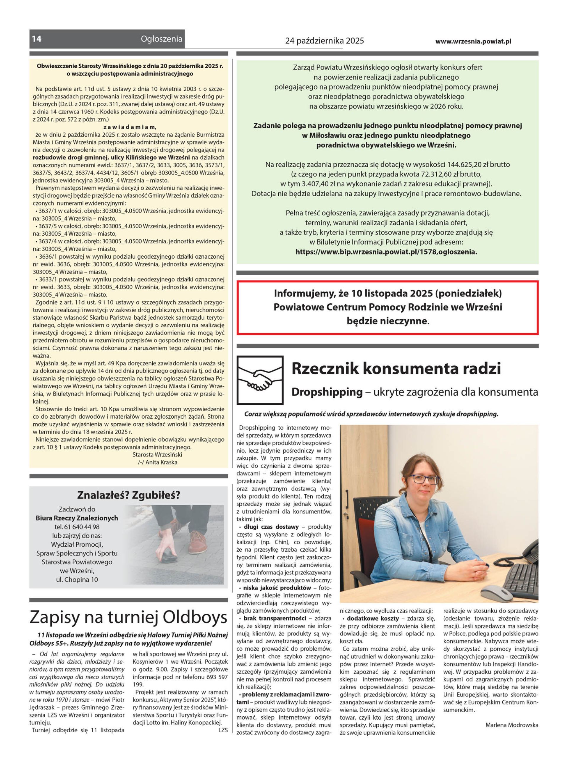 Administratorem danych osobowych jest Starostwo Powiatowe we Wrześni, ul. Chopina 10, 62-300 Września.